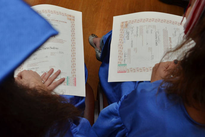 At the end of the ceremony, an Honorary Diploma di Maturità was awarded to Johnny Toksu, a Turkish-American student of Italian descent from the 2012 class who lost his battle against cancer last Spring, passing away at the age of 17. The diploma was symbolically handed out to Johnny’s classmates. “We tried to transform such a terrible event into a message of hope,” Head Mistress Fiore told i-Italy. “They will accomplish what Johnny would have accomplished in his life. He was a very gifted and sweet boy,” she added.
