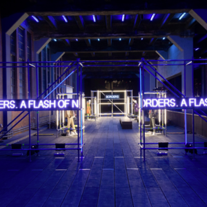 The Exhibition ‘Borders: A Flash of New Italian Fashion’ offers a glimpse into the exciting and perhaps unexpected world of young, contemporary Italian fashion, featuring pieces by 4 emerging designers presented amongst videos, DJ sets, and neon lights and set atop of New York’s High Line against the backdrop of the Hudson River.
