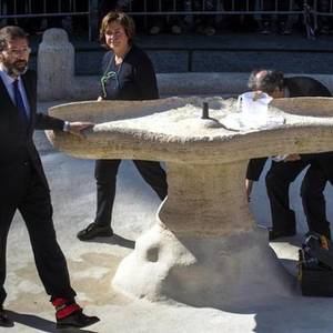 The day after it was damaged by drunken Dutch soccer hooligans the Bernini fountain called La Barcaccia – the big boat -- was, like the surrounding Piazza di Spagna itself, spotlessly clean, and a silent, meditative crowd stood behind the new barriers surrounding the fountain, watching the beginning of a restoration. The damaged fountain raises questions about how best to protect Italy’s wealth of monuments. There is no easy answer.