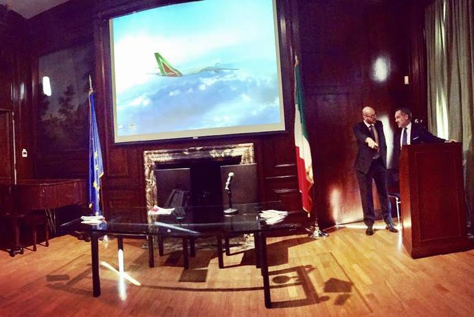 Zarifa Maria Garofalo, Menin’s U.S. publicist, introduced a presentation of the book to a crowd gathered around a table where Menin, De Ciechi and journalist Francesca di Matteo were seated. Dozens of copies of the novel were displayed on the shelves behind them.