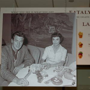 New York City’s favorite Italian marketplace is hosting a one of a kind photographic show: “La Dolce Vita, 1950-1960. Stars and Celebrities in the Italian Fifties” curated by Marco Panella. Hanging from bars suspended from the ceiling are wonderful black and white images of stars at play and work in Italy during this glamorous decade.